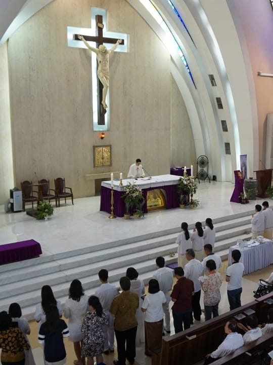 Bila ingin menerima sakramen pengakuan dosa ini mohon setelah usai misa harian atau mingguan silahkan menghubungi koster di Sakristi.
